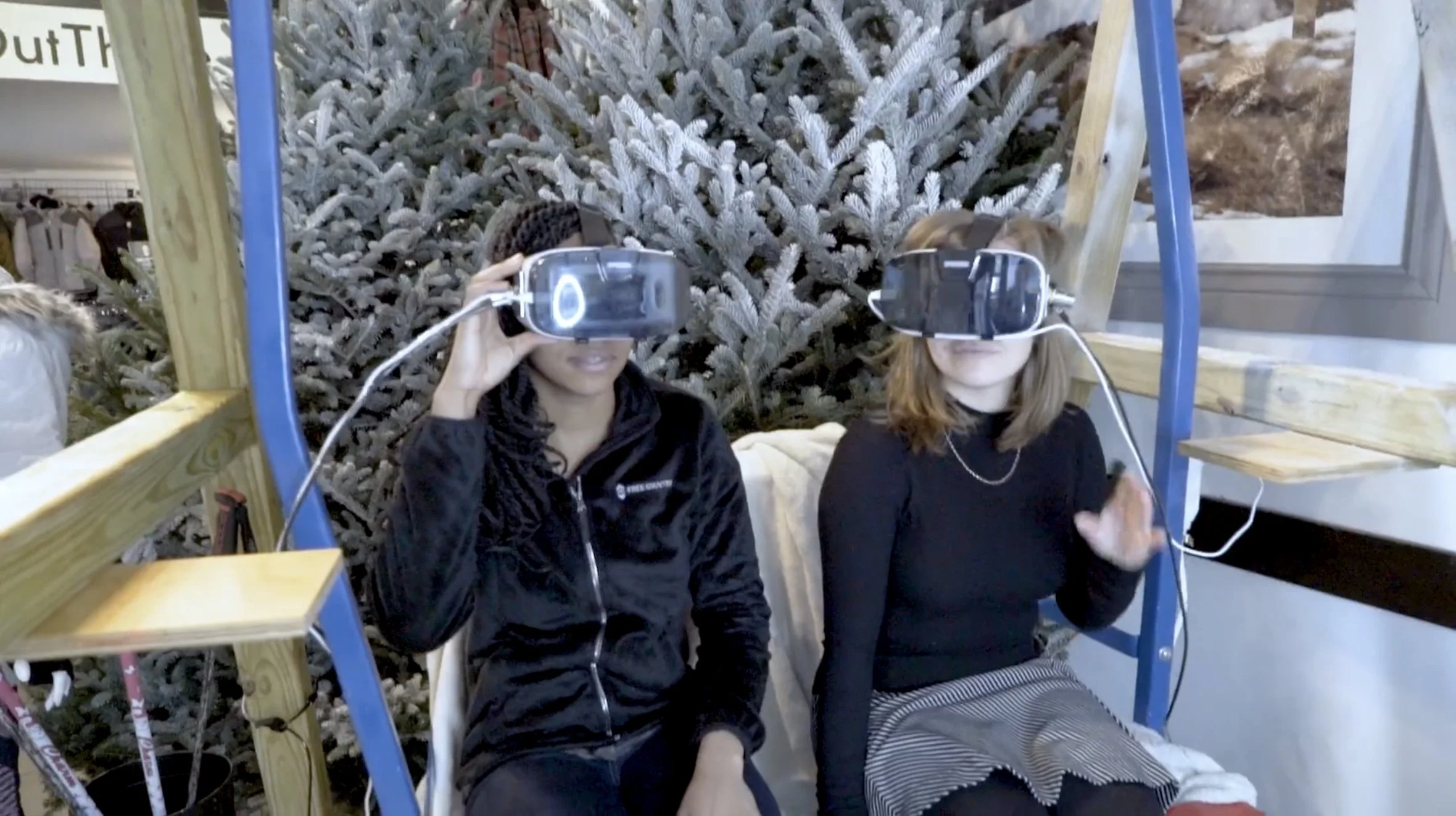 Built a high-tech winter experience, featuring a full-size chairlift paired with two sets of 360-degree virtual reality goggles to virtually transport customers to the slopes – along with a photo booth, snow, pine, hand-painted mural. We did the concept; design; VR; installation.